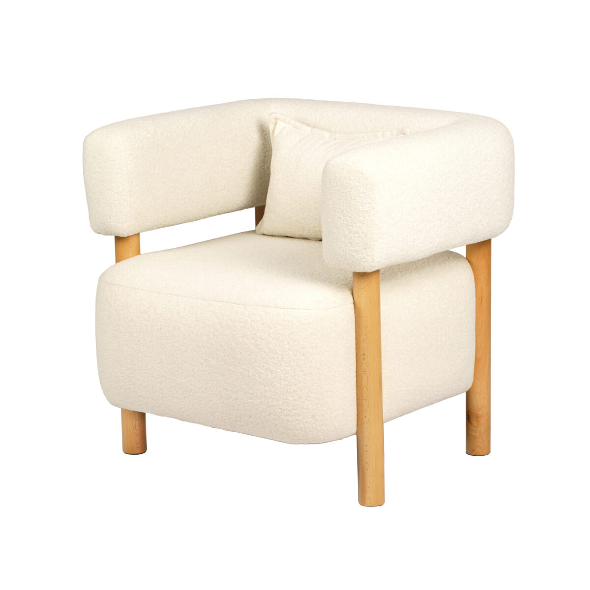 The Sillon armchair combines the elegance of contemporary design with a sense of ultimate comfort. Its refined outline and plush texture offer a welcoming feel, ideal for relaxation at home or a cozy corner in professional spaces such as reception offices, boutiques, and lounges. The back and arms, upholstered in soft fabric in white tones, create a unique shell of relaxation that embraces the body. The sturdy wooden legs provide stability and add natural warmth to the ensemble.